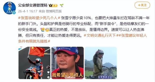 张雪宁愿少卖10%,也要把大排量车拦在驾龄不满一年的新手门外。头盔和护具是他骑行的专业标配,而“新手禁令”,是他给摩友们的一份安全底线。真正的热爱,不是放纵,是懂得边界。速度可以让人热血沸腾,但只有责任,才能让热爱走得更远。