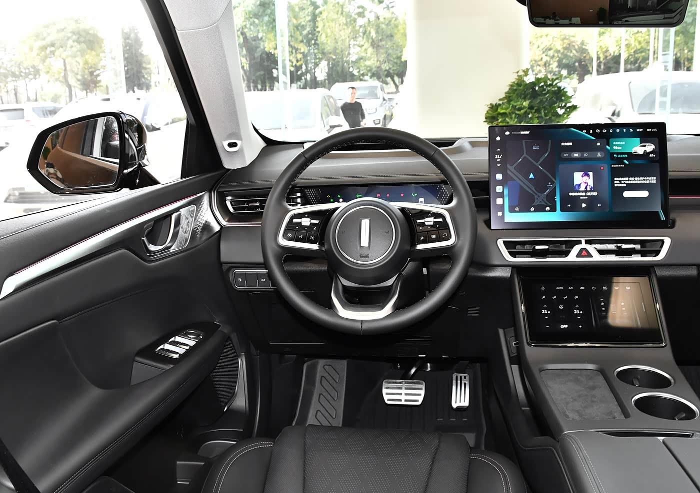 进入车内,内饰采用环抱式豪华座舱,中控标配9.2 英寸全液晶仪表 + 14.6 英寸悬浮中控屏 + 9 英寸空调触控屏 + 9 英寸 W-HUD 抬头显示四屏联动,搭载高通 8155 芯片 + Coffee OS 2.0 系统,界面卡片式设计、操作流畅,支持 540° 全景影像、透明底盘、语音连续交互、OTA 升级、CarPlay/HiCar,智能体验拉满。空间上,标准2+3 大五座布局,前排座椅 12 向电动调节、加热 / 通风 / 按摩、腿托,坐垫长度 510mm,支撑性拉满;后排堪称 “宽奢大沙发”,坐垫长 500mm,腿部空间两拳以上、头部一拳,中间地台纯平,满载三人也舒适;后备箱常规容积 450L,放倒后排可扩展至 1300L,满足露营、自驾装载需求。